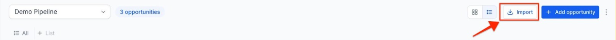 - Accessing Import Function: Navigate to the opportunities section and click on the import button.