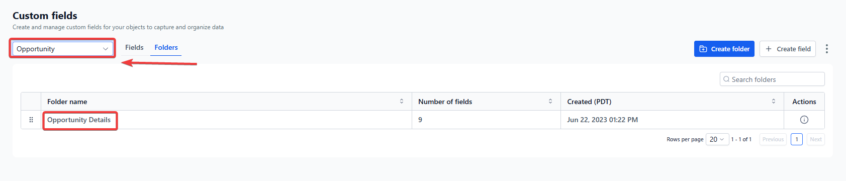 - Categorize and group your custom fields for opportunities into custom folders, just like in the contacts area. To accomplish this select the “Add Folder” folder button and ensure the object is set to Opportunity and save it to use the custom folder in Opportunities.