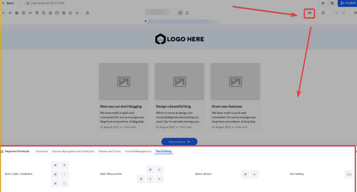 - Keyboard Shortcuts: By utilizing standardized key combinations, users can execute complex layout changes and administrative tasks with greater precision and speed. To access the full directory of commands, simply press Shift + / while inside the builder interface. Familiar commands can be used for text formatting (such as bolding or hyperlinking), while specific shortcuts allow you to save, undo, or preview your progress instantly.