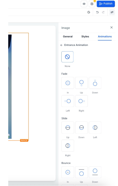 A: After adding an image element, you’ll see the “Image Settings” panel on the right side of the screen. There are three tabs to customize your image: