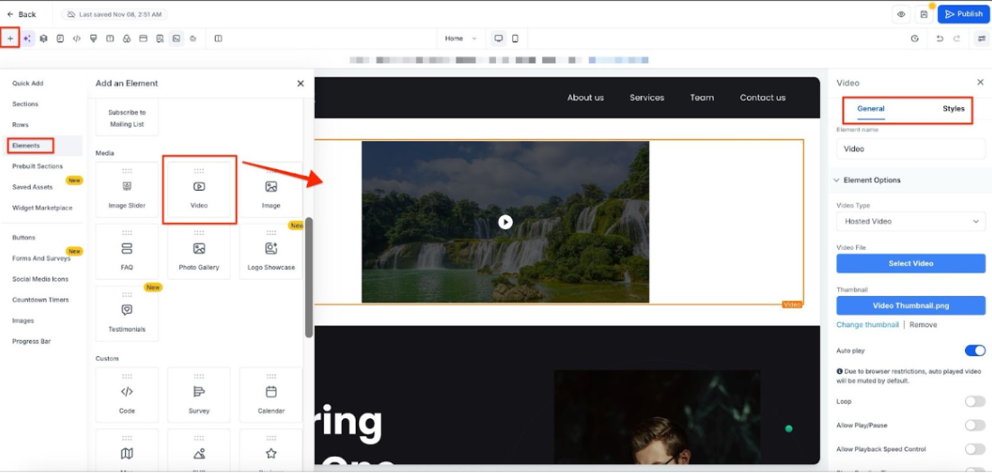How to Use: Add a video element to your page, then customize settings such as loop, mute, playback speed
