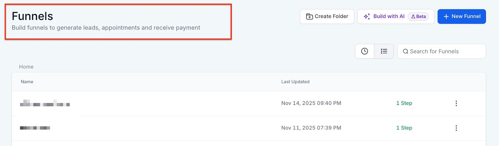 Navigate to your funnel/website builder within Mastermind