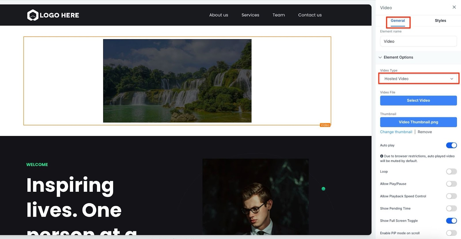 Once the video element is placed, click on it to access the settings.