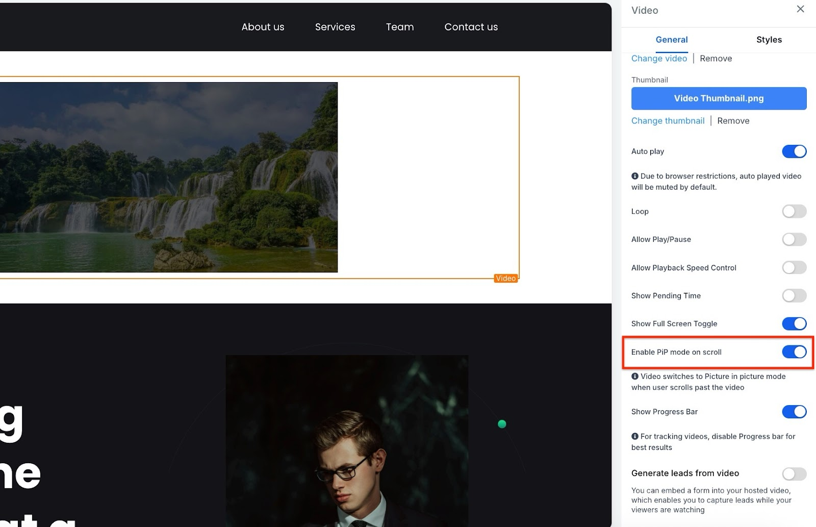 Once enabled, the PiP feature will activate automatically when a user scrolls past the video.
