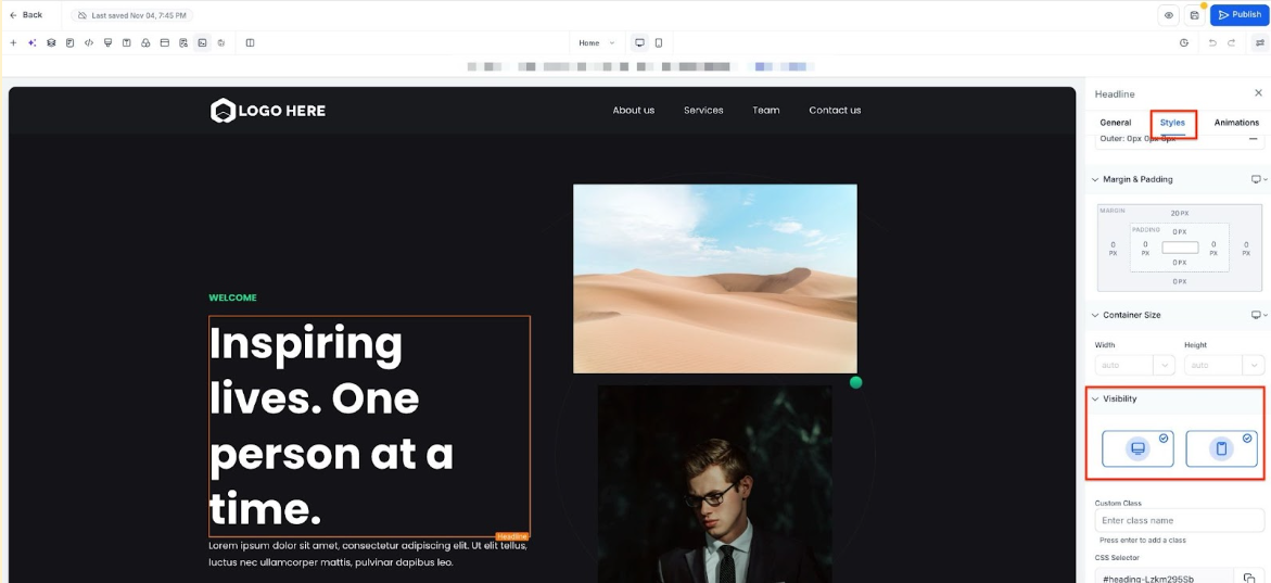 - NOTE: If you accidentally hid something you didn't want to hide, you can find it by going to Elements > Manage > click the eyeball icon to unhide (or re-hide) an element.