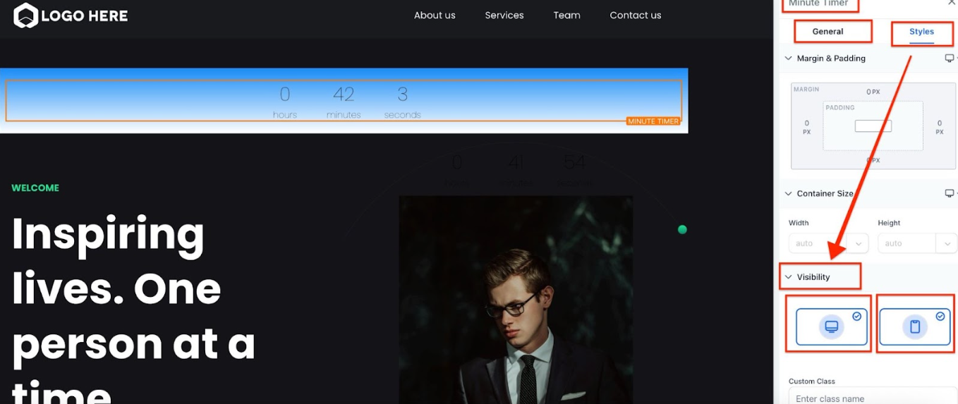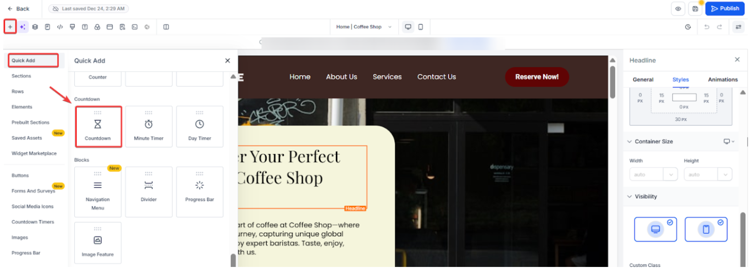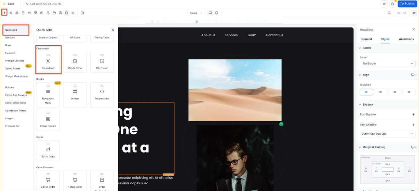 You may want to delay the appearance of certain elements in your funnels or website. This can be done using the Countdown timer, or time delay feature, within the builder.