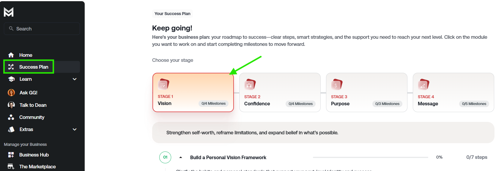 GG’s engagement will differ based on your active Mastermind Membership and you’ll also notice that her interface will look slightly different depending on the Mastermind Membership you have.