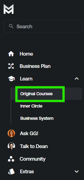You can access all of the Courses on the Mastermind Platform directly under the “Learn” tab on your Mastermind Account, and diving into the “Original Courses” section, as shown below: