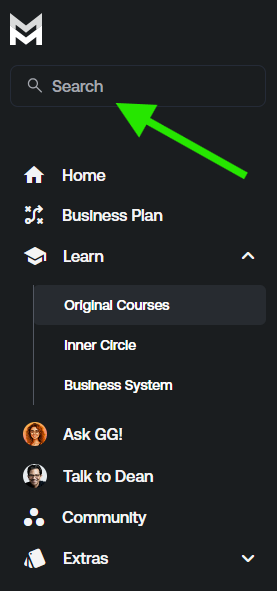 We also offer a Search Bar at the very top left of your Mastermind Account, allowing you to search up a particular course and you’ll be able to view the course directly as well!