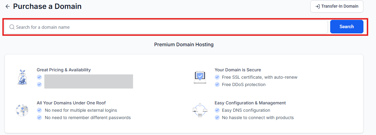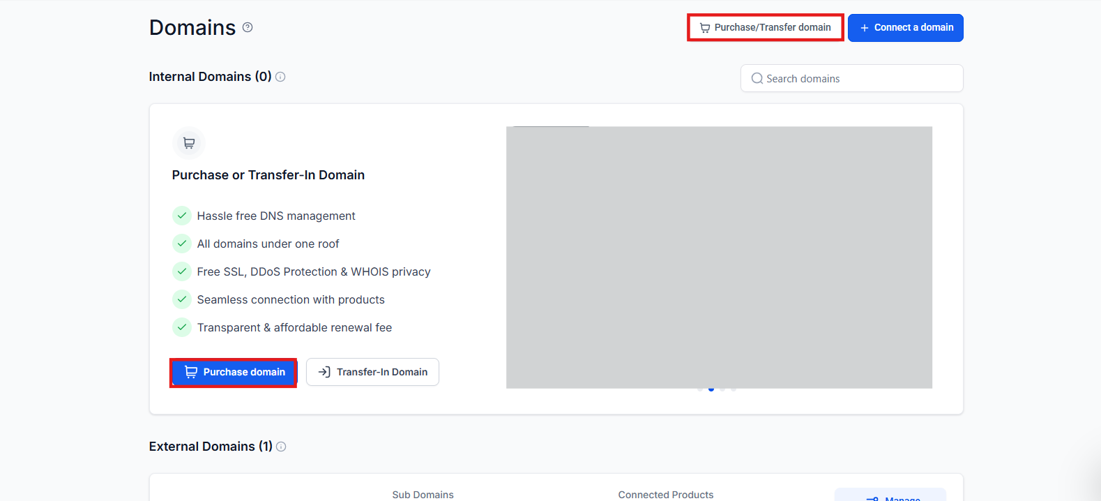 - Centralized Domain Management: Purchase and manage your domains directly from the platform, avoiding the hassle of external services and multiple logins.