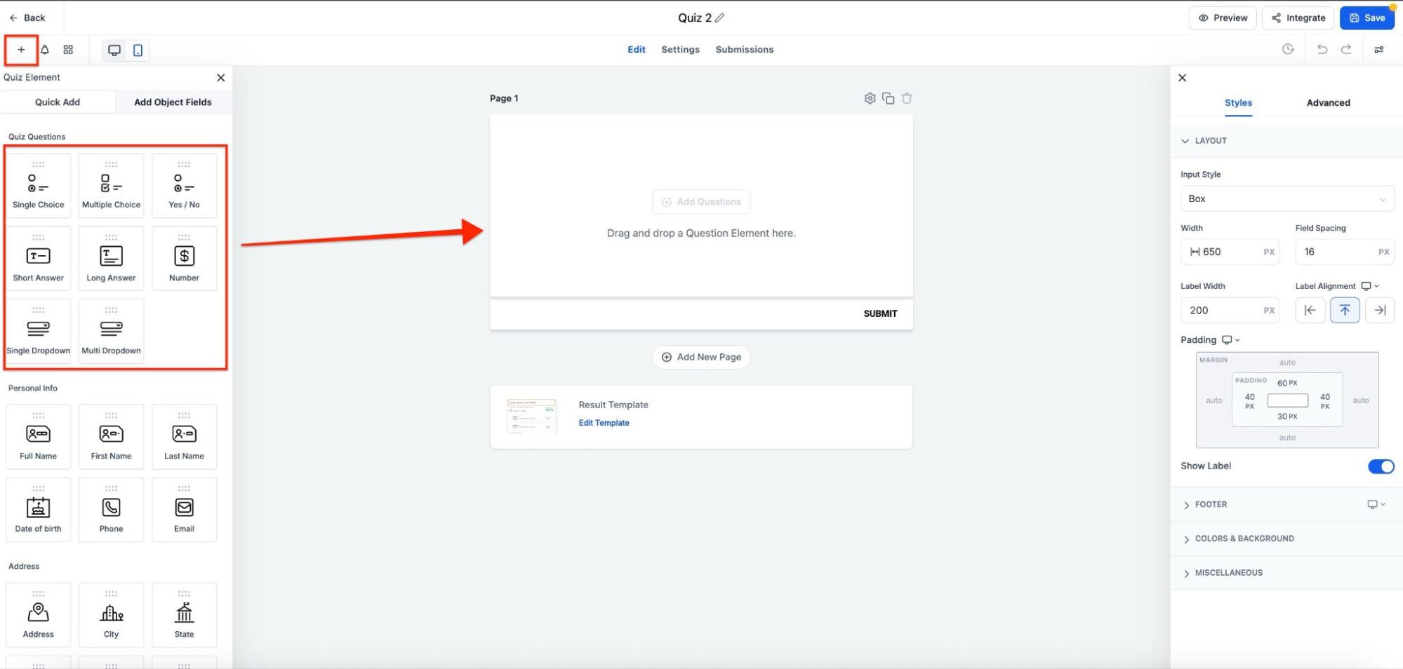 - Drag-and-Drop Interface: Easily add and organize different question types by simply dragging and dropping elements into place.