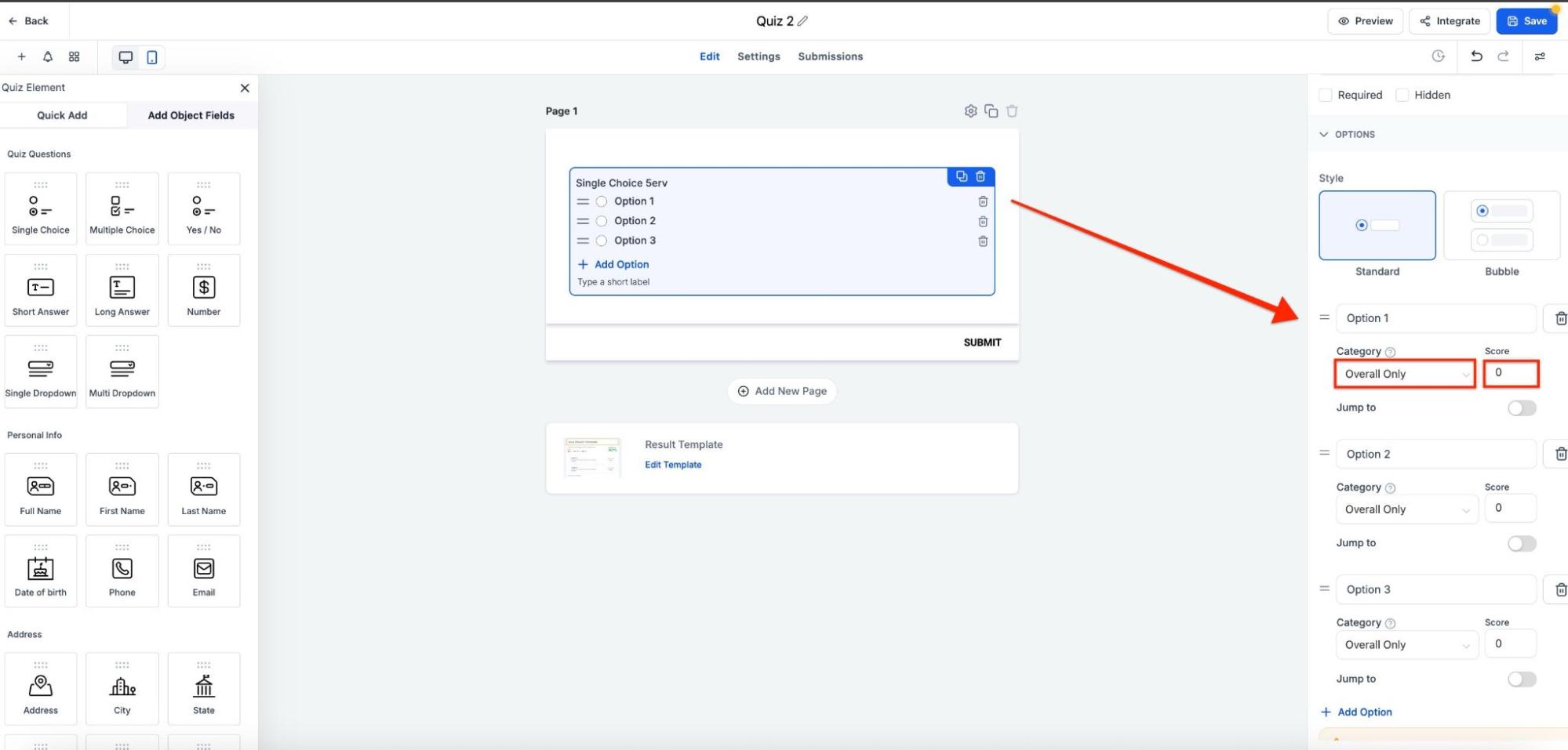 - Customizable Scoring: Tailor scoring for each question or category to gain insights or offer personalized results.