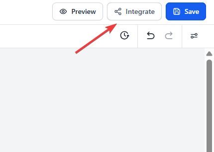 1. Top Panel: This section includes several useful options: the Back button (to return to the list of quizzes), the Title of the quiz, the Preview button (to view the quiz's appearance), the Integrate button (to embed the quiz into a page), the Save button, a toggle for the Left Panel, a switch for viewing in Desktop or Mobile mode, the Versions list, undo/redo options, and a toggle for the Right Panel.