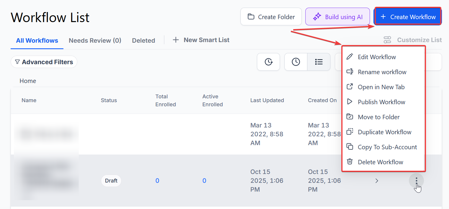 - Go to the workflow section in your platform and either create a new workflow or select an existing one to edit.