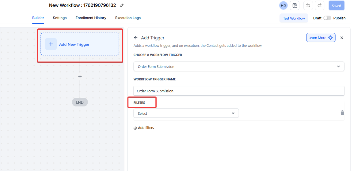 - Trigger: Use the Order Form Submitted trigger.