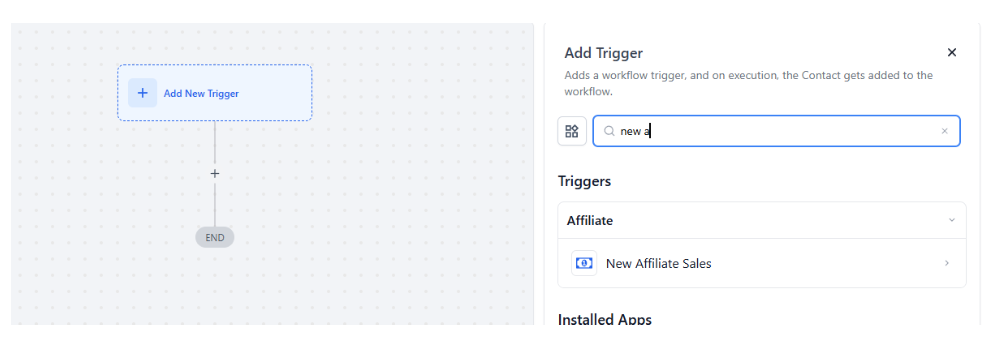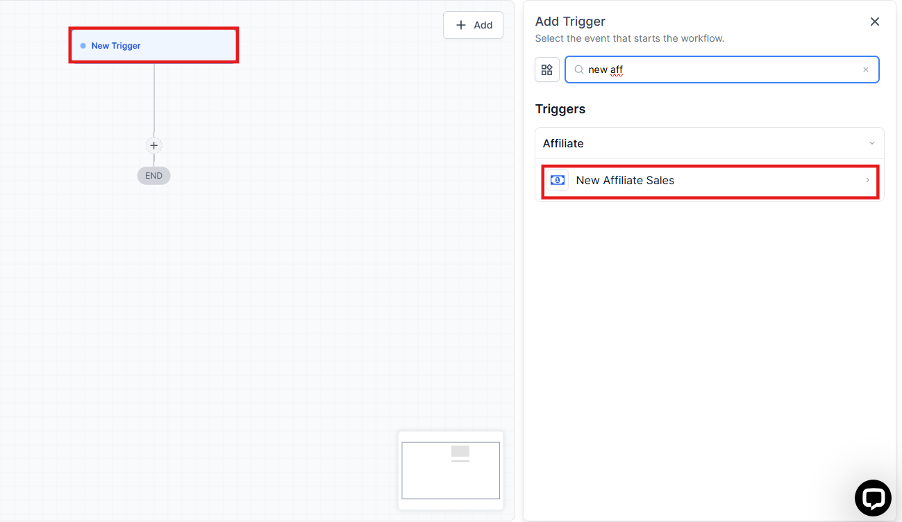 3. Add the trigger: Search for "New Affiliate Sales" and select it.