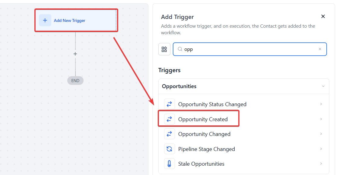 The Opportunity Created trigger helps businesses automate workflows when a new opportunity is introduced into their system. By leveraging this trigger, businesses can simplify processes such as task assignments, follow-up notifications, and status updates based on the characteristics of the newly created sales opportunity. Whether you’re managing a sales pipeline or tracking potential deals, this trigger enhances efficiency and ensures important actions are taken at the right time.