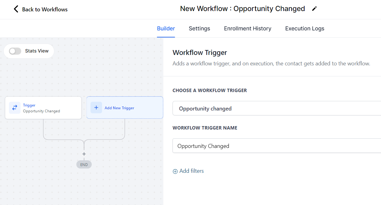2. Select Opportunity Changed Trigger: Within the Workflow Builder interface, locate the Opportunity Changed trigger among the available options.