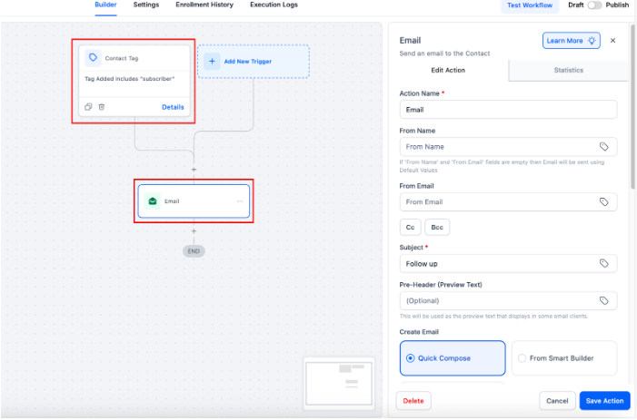 - After creating a Contact Tag Workflow trigger, ensure that your workflow is saved and published. Test the workflow by adding or removing the relevant tags to verify that the trigger is working correctly.