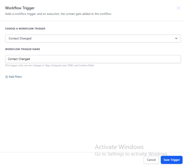 By default, the trigger applies to all contacts. Filters can be used to narrow it down to specific segments, tags, or criteria to control which contacts will activate the workflow.