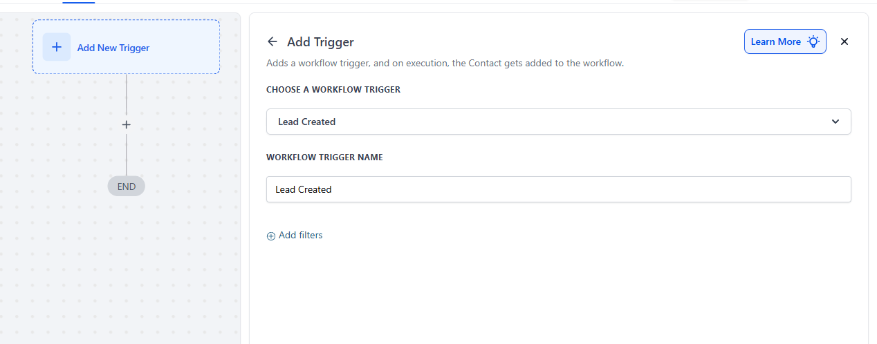 - Choose Lead Created as the trigger for the workflow.