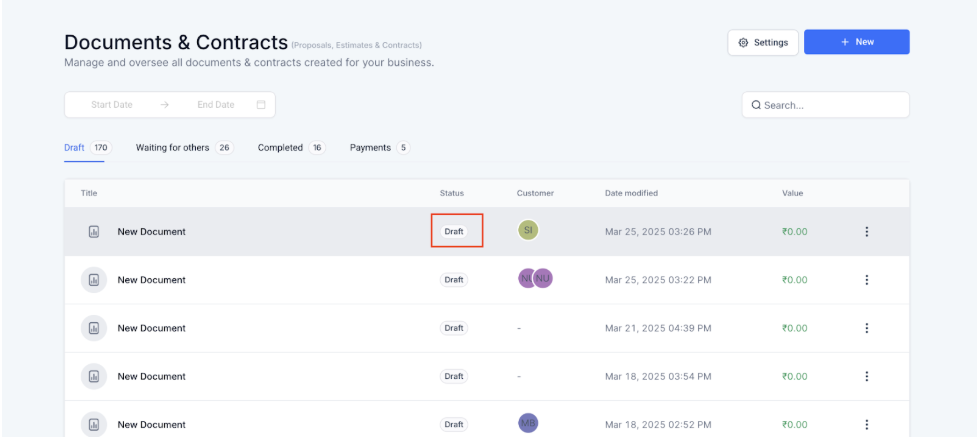 - Track Document Status: Once contracts are sent or drafted, keep an eye on the document status for any approvals or actions needed, helping ensure timely follow-ups and reducing delays in the process.