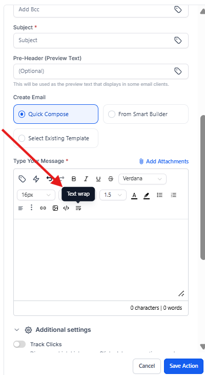 Text-Wrap Tool for Send Email Action: