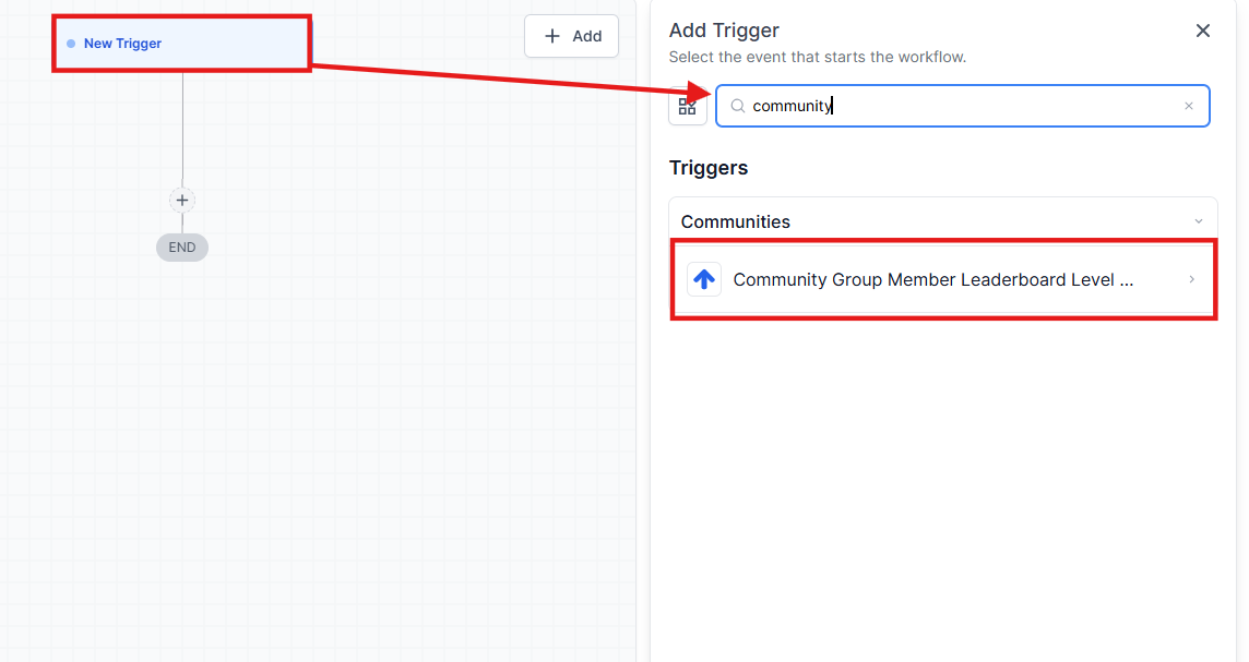 2. Choose the Trigger: Select "Community Group Leaderboard Level Changed" from the available triggers.