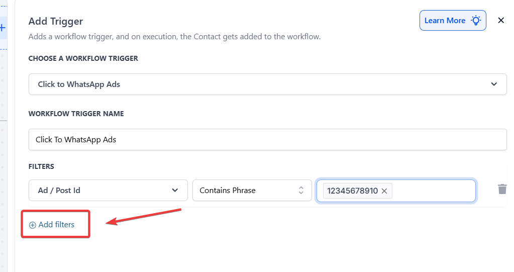 Instant communication is key to engaging high-intent leads. The Click-to-WhatsApp Ads and Facebook Page Call-to-Action (CTA) workflow trigger offers a seamless way to turn ad clicks into immediate conversations. This powerful feature allows businesses to automate their response, assign leads, and trigger follow-up actions as soon as a user reaches out. By automating this process, businesses can increase engagement, improve customer service efficiency, and boost their return on investment (ROI) for ad campaigns.