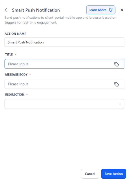 The Smart Push Notification Workflow Action for Client Portal App