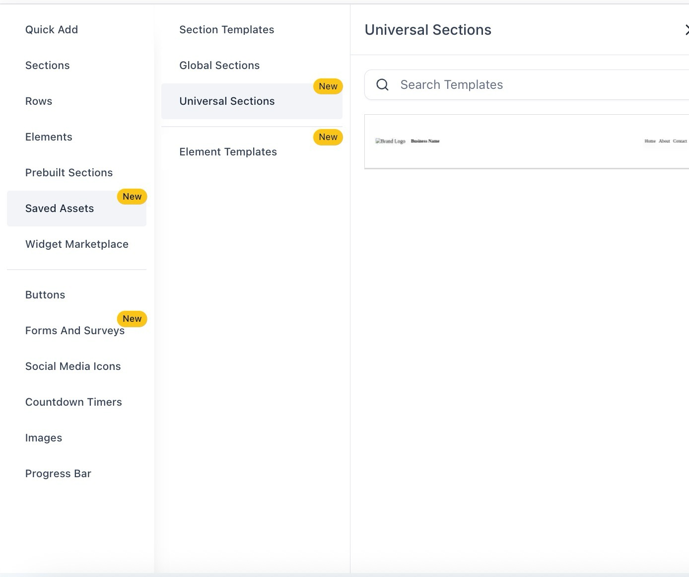 The Universal Sections feature allows you to save and sync design elements such as headers, footers, banners, and CTAs across your entire account, ensuring a consistent and efficient design experience. Once you update a Universal Section, the changes are automatically reflected in all instances across websites, funnels, blogs, and e-commerce stores.