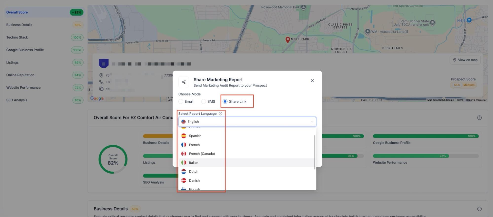 - Break down language barriers by sharing or exporting reports in 13 different languages, allowing you to build trust and credibility.