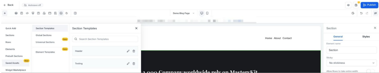 Answer: Global Sections allow you to save certain elements (such as headers or footers) to reuse across different blogs, funnels, and websites. Once you save a section as global, you can easily insert it into any page or post to maintain a consistent design across all your sites.