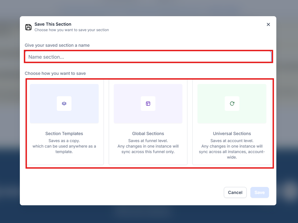 - Consistent Design Across Platforms: Use section templates and global sections to maintain a uniform look and feel between your website, funnels, and blogs.