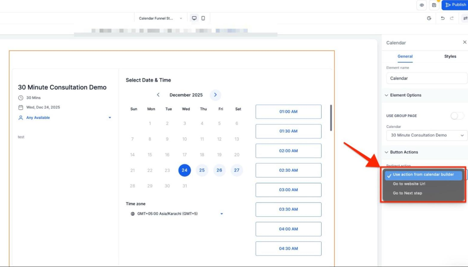 Answer: After configuring and saving your changes, preview the calendar page to ensure the link works as expected. You can also test it by completing the action (e.g., booking an appointment) and checking if users are correctly redirected to the next page.