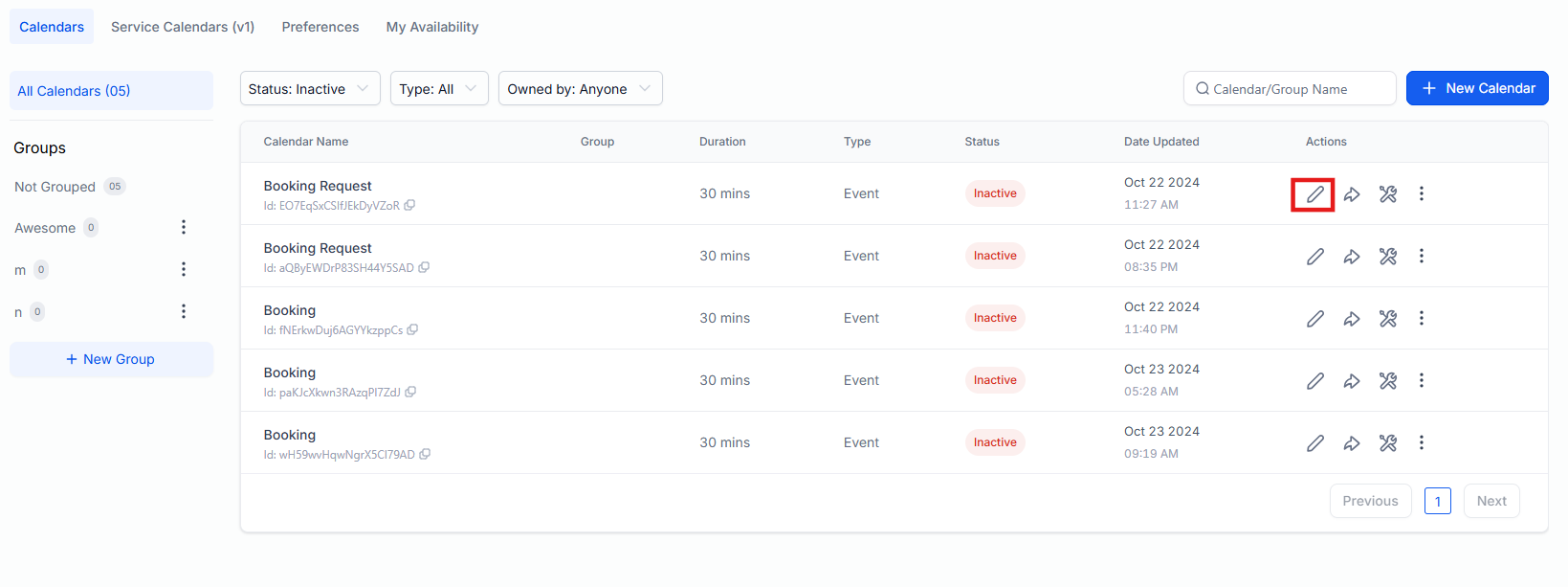 - Select the calendar you wish to customize and click "Edit."
