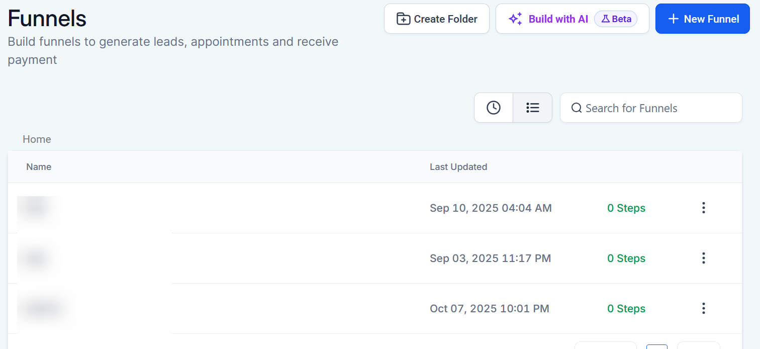 - Click on Funnels/Websites at the top and open the desired website or funnel.