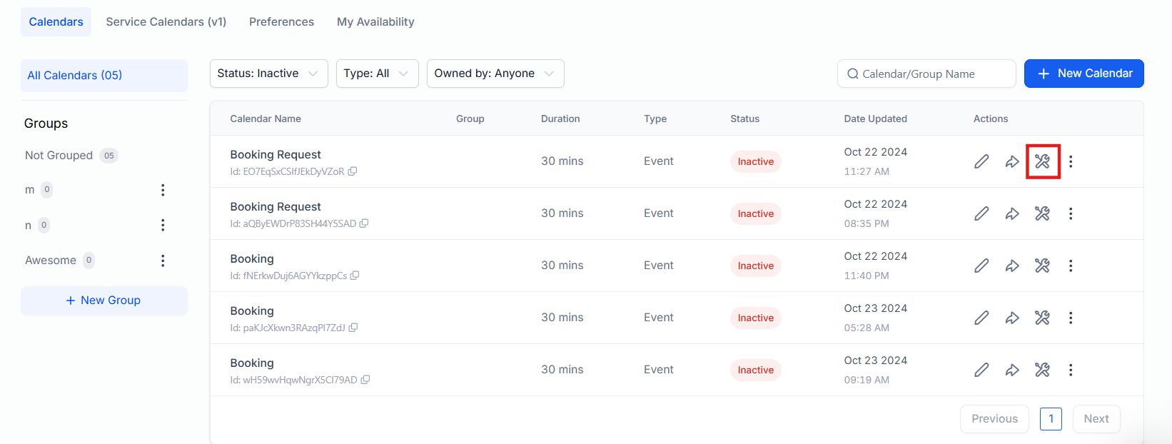 - Individual Booking Calendars