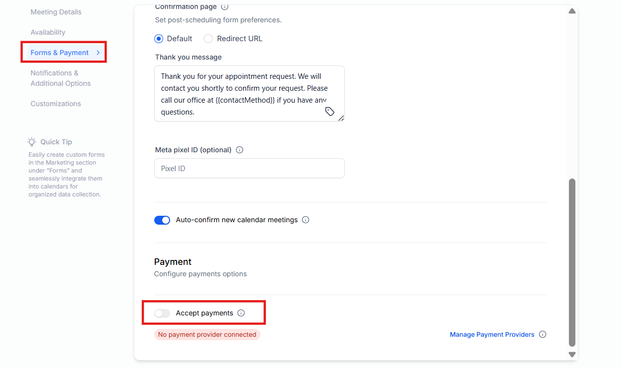 2. Enable Payment Collection for Calendars: